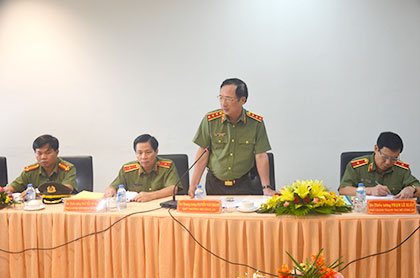 Đại tá Nguyễn Hữu Trí, Giám đốc Công an tỉnh đã báo cáo với đoàn về công tác đảm bảo an ninh quốc gia, giữ gìn trật tự an toàn xã hội của lực lượng Công an tỉnh trong 6 tháng đầu năm 2016. Qua đó, Ban Giám đốc đã phân tích tình hình an ninh trật tự trên địa bàn và những biện pháp cụ thể trong thời gian tới, nhằm thực hiện nghiêm túc chỉ đạo của Thủ tướng Nguyễn Xuân Phúc và Bộ trưởng Bộ Công an tại Hội nghị sơ kết công tác Công an toàn quốc 6 tháng đầu năm 2016.