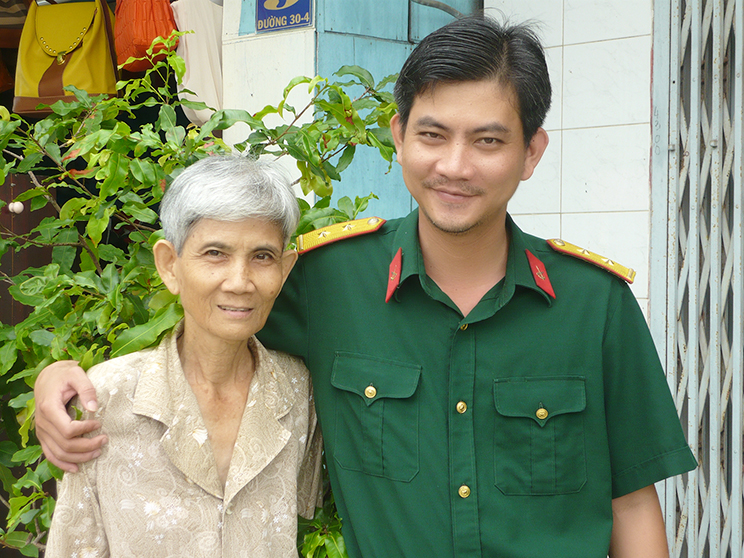 | Cô Lê Hiếu Tâm cùng con trai ĐạI úy Nguyễn Sĩ Đông |