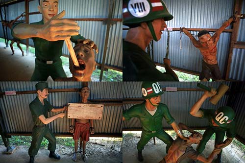Tôi cùng đoàn vào tham quan nhà tù Phú Quốc với bao cảm xúc lẫn lộn. Trước tiên là hơn 10 lớp rào kẽm gai nhọn chằng chịt, 4 tháp canh sừng sững làm tôi cảm giác thấy ngột ngạt và rợn người. Men theo con đường dẫn, những hình phạt nằm chuồng cọp, những màn tra tấn bắt đầu hiện ra bằng hình nộm tái hiện. Đã từng nghe kể, đã từng đọc tài liệu về nhà tù Phú Quốc nhưng tôi không thể nào tưởng tượng sự dã man giữa con người với con người đến mức độ tàn nhẫn vậy. Nằm chuồng cọp, đóng đinh vào đầu gối, luộc chín người, chôn sống, đốt hạ bộ… cái lạnh chạy dọc sống lưng tôi. Phía trước đoàn là một nhóm “Tây ba lô”, tôi liếc thấy họ chép miệng, lắc đầu. Không biết họ có phải là người Mĩ không? Và nếu là người Mĩ họ nghĩ gì? Cái chép miệng, cái lắc đầu đó biểu hiện cho điều gì? Có phải đó là sự kinh tởm tội ác mà cha ông, bạn bè, hay chính họ mang đến cho đất nước này?