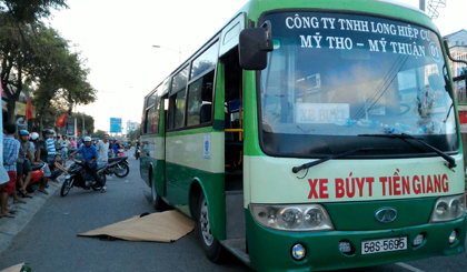 Theo người dân có mặt tại hiện trường, vào khoảng 17 giờ 30 ngày 6-4, xe buýt BKS 53S-5695 lưu thông trên đường Ấp Bắc, hướng từ vòng xoay ngã ba Trung Lương vào nội ô TP. Mỹ Tho. Khi xe đang đi đến đoạn gần bến xe Tiền Giang thuộc địa bàn phường 10, TP. Mỹ Tho thì giảm tốc độ. Lúc này phụ xe (chưa rõ tên tuổi) mở cửa trước để dời thùng ổi ra ngoài để đưa xuống đường. Do túi đựng bị rách làm phụ xe mất thăng bằng té ngã xuống đường và bị xe buýt cán qua người tử vong tại chỗ.