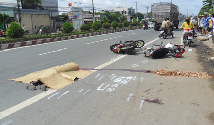 Khi đó, ôtô tải 63L-5085 vừa trờ tới cán qua người lái xe môtô biển số 60N5-2064, làm nạn nhân chết tại chỗ.