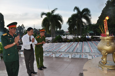 | Bí thư Tỉnh ủy Trần Thế Ngọc viếng Nghĩa trang Liệt sĩ tỉnh ngày 26/7/2013. Ảnh : Hữu Thuận. |