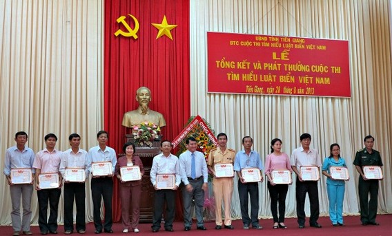 Ban Tổ chức cuộc thi “Tìm hiểu Luật biển Việt Nam” vừa tổ chức lễ tổng kết và phát thưởng cuộc thi tại hội trường Bộ chỉ huy Quân sự. Ông Nguyễn Văn Khang, Chủ tịch UBND tỉnh cùng lãnh đạo các sở, ban ngành, đoàn thể liên quan đã đến dự.