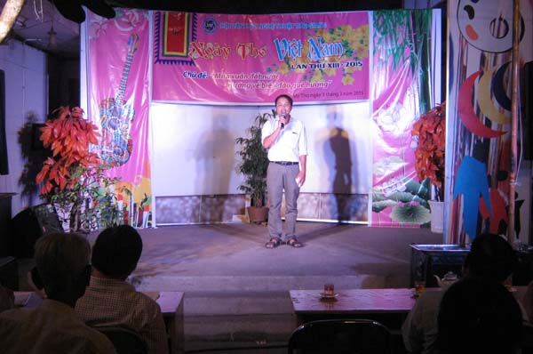 Phát biểu khai mạc đêm thơ, soạn giả Huỳnh Anh - Chủ tịch Hội Văn học Nghệ thuật Tiền Giang nhấn mạnh: “Ngày thơ Việt Nam không chỉ là dịp để tôn vinh những giá trị thơ ca của dân tộc Việt Nam mà còn là ngày hội văn hóa để các nhà thơ, tác giả thơ và đông đảo người yêu thơ cùng hướng tâm hồn đến với thế giới của cái đẹp, thể hiện tình yêu đối với tự do và hòa bình, hạnh phúc của nhân loại”.