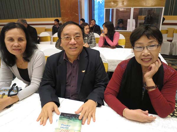 Nhà văn Thu Trang (bìa trái) cùng nhà thơ Trần Đăng Khoa