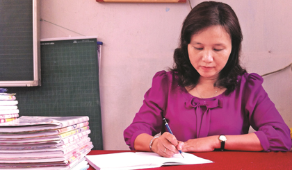 Cô Nữ chia sẻ: “Nét chữ là nết người, cho nên tôi chú trọng việc rèn nét chữ cho các em học sinh lớp 1, đặc biệt là phần nét của những chữ cái đầu để các em biết khái quát những con chữ như thế nào”.