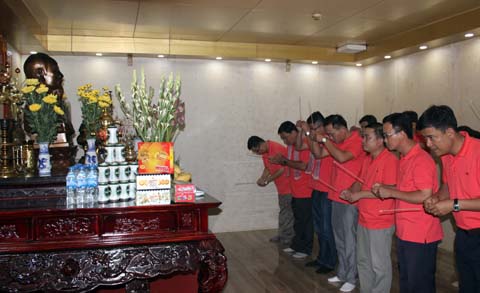 Thắp nhang tại Đền thờ Bác trong Quảng trường Hồ Chí Minh