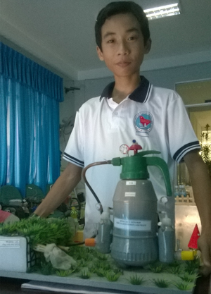 Năm nay, hưởng ứng phát động của nhà trường kêu gọi các em học sinh tham gia Cuộc thi Sáng tạo thanh, thiếu niên và nhi đồng cấp tỉnh, sau nhiều đêm trăn trở, chứng kiến sự phá hoại của loài chuột khiến lòng em xót xa, cộng với niềm đam mê sáng tạo, em nói lên suy nghĩ của mình và nhờ cha hỗ trợ một số khâu mà khả năng em tự làm không được để phát minh ra sản phẩm “Dùng hỗn hợp khí để đuổi và diệt chuột”.