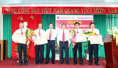 Dịp này, Giám đốc Agribank Tiền Giang trao giấy khen cho 4 đơn vị trực thuộc xuất sắc: Agribank thị xã Cai Lậy hạng Nhất, Agribank huyện Gò Công Đông đạt hạng Nhì, Agribank huyện Chợ Gạo và Agribank TP. Mỹ Tho đồng hạng Ba.)