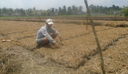 | Anh Quốc đang chuẩn bị đất trồng rau. |