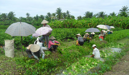 Tại xã Tam Hiệp, diện tích đất trồng ngò gai khoảng 150 ha, tập trung nhiều nhất là ấp 3 và ấp 4. Ông Phan Thành Văn, Phó Chủ tịch UBND xã Tam Hiệp cho biết, tại ấp này có tổ Hợp tác rau an toàn (29 hộ, trồng 22 ha), trồng chuyên canh cây ngò gai khác. Mặc dù cây ngò gai này giá bán thấp hơn giá ngò gai ta từ 7.000 - 8.000 đồng/kg nhưng cho năng suất từ 4,5 đến 5 tấn/1.000m2, (hơn ngò gai ta từ 500 kg trở lên/1.000 m2). Trong vụ này, nông dân tổ hợp tác thu nhập khoảng trên 30 triệu đồng/1.000m2.