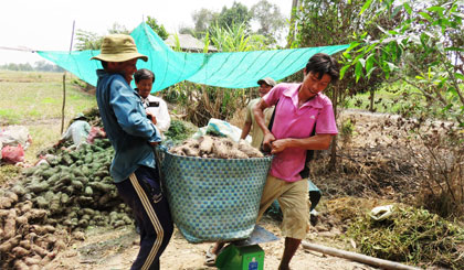 Theo các hộ trồng khoai mỡ cho biết, năm nay thời tiết thuận lợi, khoai mỡ phát triển tốt, cho năng suất bình quân từ 18 - 20 tấn/ha. Hiện thương lái đến thu mua với giá từ 8.000 - 10.000 đồng/kg.