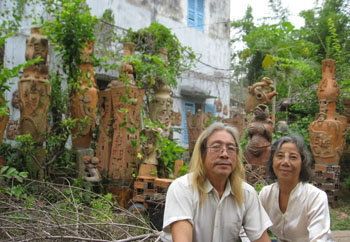 Chị Cúc học ngành kế toán ngân hàng, nhưng khi gặp anh lại chuyển sang làm nghệ thuật. Chị có khoảng 10 bức tranh, còn lại là hàng trăm tác phẩm gốm được tạo bằng đôi tay kỳ diệu của "cô gái xứ dừa" những bình gốm lớn nhỏ, mặt nạ đủ kích cỡ...