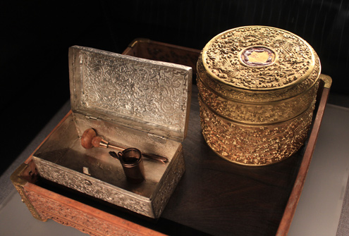 Ống vôi được làm bằng bạc và đồng với nhiều hình thù khác nhau.
