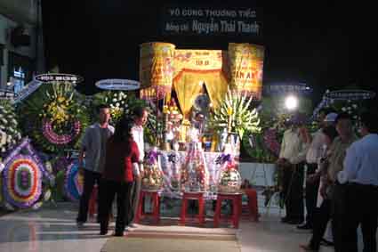 Ít khi ở TP.Tân An có đám tang lớn như đám tang Bảo Thanh. Hầu hết các đơn vị nghệ thuật các tỉnh miền Đông, miền Tây Nam Bộ đều đến phúng viếng. Các huyện thị, ban ngành, nhiều xã trong tỉnh Long An đều cử đoàn đến viếng anh. Rất nhiều bạn bè, người hâm mộ đến với anh trong 3 ngày tang, nhiều lúc không đủ chỗ ngồi. Tràng hoa phúng viếng anh không hề thua kém bất cứ đám tang nào ở TP.Tân An...