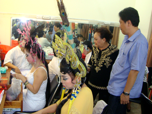 NSND Ngọc Giàu lắng nghe tâm tư của các nghệ sĩ trẻ trong hậu trường NSND Ngọc Giàu kể lại: “Lúc mới bước chân vào nghề, tôi đã say mê bộ môn nghệ thuật hát bội, lớn lên khi đã theo nghề, tôi thường dành thời gian đến đình Cầu Quan, xem các nghệ sĩ tiền bối thời đó biểu diễn. Tôi bị cuốn hút bởi tài năng các nghệ sĩ: NSND Năm Đồ, NSND Thành Tôn, NS Minh Tơ, Khánh Hồng, Ba Út (mẹ của NSƯT Ngọc Khanh), Hoàng Bửu, Hoàng Nuôi, Huỳnh Mai (mẹ của NSƯT Thành Lộc)… Hát bội ngày nay đã lược bớt ngôn ngữ Hán văn khó hiểu, để khán giả trẻ có thể tiếp nhận. Tôi đã từng đến nhà cố NSND Thành Tôn xin thọ giáo ông những mong học nghề, lúc đó ông đã hướng dẫn tôi sơ nét vai diễn Triệu Tử Long để áp dụng khi diễn vai này trên sân khấu cải lương tuồng cổ”.