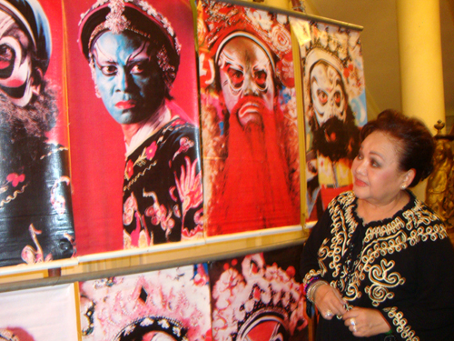NSND Ngọc Giàu say sưa ngắm nhìn các bức ảnh hóa trang của các nghệ sĩ hát bội