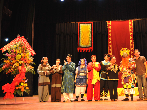 Lớp đào tạo diễn viên do NSƯT Hữu Châu giảng dạy tặng lẵng hoa chúc mừng chương trình NSƯT Hữu Châu cho biết thêm: “Đối với chúng tôi, những nghệ sĩ đang làm công tác đào tạo, bộ môn nghệ thuật hát bội là một viên ngọc quý, cần được giới thiệu với các sinh viên để các em hiểu và học hỏi từ vũ đạo đẹp mắt cho đến cách diễn đạt nội tâm của các nghệ sĩ hát bội. Từ đó, các em có thể vận dụng kiến thức trên cho nghề khi diễn các vở kịch lịch sử. Tôi mừng là các học trò của tôi đều say mê theo dõi, yêu thích nghệ thuật hát bội. Mỗi suất diễn tới chắc chắn sẽ có mặt thầy trò chúng tôi”.