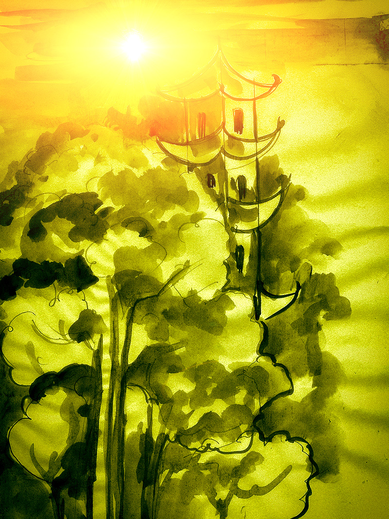 Một buổi sáng hơi sương làm mờ cả không gian. Rồi bỗng nhiên trời sáng dần, sương loãng ra, tan dần. Và cuối cùng là vầng mặt trời uy nghi trên đỉnh tháp.