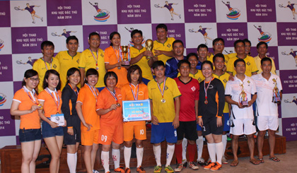 Ban Tổ chức trao 9 giải Nhất, Nhì, Ba cho môn tennis, bóng đá nam, nữ, trong đó giải Nhất đôi tennis thuộc về Nguyễn Nhị Thanh - Cheng Burkry (Sacombank Cambodia), bóng đá nam Chi nhánh (CN) Long An, bóng đá nữ CN 8-3 Hồ Chí Minh;