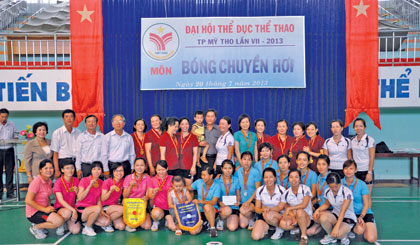 Các xã Trung An, Mỹ Phong và CLB Bóng chuyền da tại Trung tâm TDTT TP. Mỹ Tho vẫn hoạt động thường xuyên; 10 xã (phường) khác còn có đội BC nhưng hoạt động cầm chừng. Hơn 5 năm qua Mỹ Tho vẫn duy trì phong trào tổ chức giải BC Nông dân, BC Cựu chiến binh cho xã, phường”.