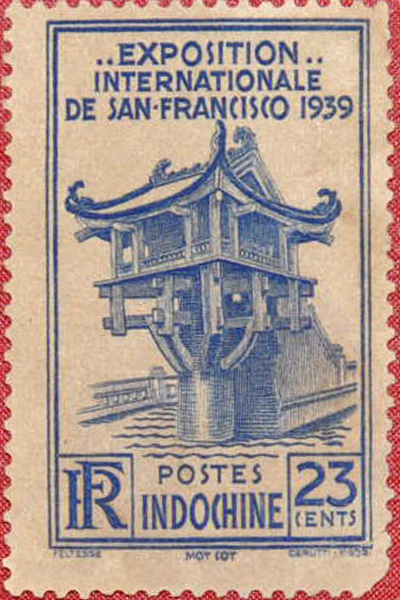 Tem về chùa Một Cột (Hà Nội) - ngôi chùa vừa giành kỷ lục kiến trúc độc đáo nhất châu Á. Đây là tem Đông Dương, được phát hành năm 1937.