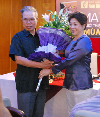 Giám đốc NXB Văn hóa - văn nghệ TP. HCM tặng hoa chúc mừng nhà văn Ma Văn Kháng