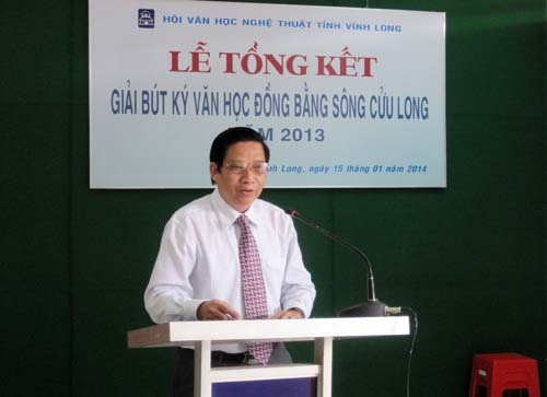 Sáng nay, 15/01, lễ tổng kết trao giải cuộc thi bút ký văn học ĐBSCL2013 tại Hội Văn học nghệ thuật Vĩnh Long. Nhà LLPB Lê Quang Trang - Phó Chủ tịch Hội Nhà văn Việt Nam, Chủ tịch Hội Nhà văn TP.HCM, đại diện lãnh đạo các Hội VHNT trong khu vực, các tác giả đoạt giải cùng đông đảo văn nghệ sĩ đến tham dự.