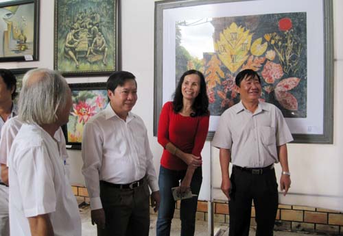 Ông Trần Thế Ngọc - Bí thư Tỉnh ủy và lãnh đạo hội đang xem tranh