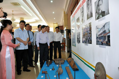 Lãnh đạo và nhân dân tham quan triển lãm.