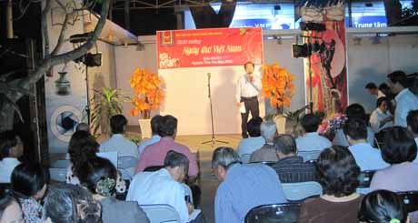 Nhà văn Thu Trang phát biểu khai mạc Ngày thơ Việt Nam năm 2011.