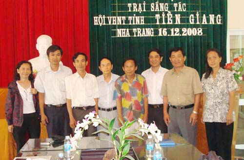 3. NHIỀU TRẠI SÁNG TÁCNăm qua có khá nhiều trại sáng tác, nhiều chuyến đi thực tế được tổ chức thành công. Đây là một trong những hoạt động hấp dẫn, góp phần nâng cao chất lượng các tác phẩm văn học nghệ thuật, kích thích sáng tạo và thu hút được rất đông hội viên tham gia. Tiêu biểu là trại sáng tác của Bộ Văn hóa Thông tin dành cho Hội VHNT Tiền Giang diễn ra từ ngày 15 đến 30-12 tại Nhà Sáng tác Nha Trang. Cũng trong thời điểm này, trại sáng tác truyện ngắn và bút ký Tiền Giang năm 2008 do nhà văn Lê Văn Thảo và nhà văn Trần Thanh Giao đã được khai mạc. Góp phần vào những hoạt động sôi nổi này còn có trại sáng tác mỹ thuật với sự tham gia của 18 họa sĩ và điêu khắc gia trong tỉnh. Ngoài ra, Hội VHNT Tiền Giang cũng đã cử 2 tác giả tham dự Trại sáng tác Văn học - Âm nhạc ĐBSCL 2008 diễn ra tại thị xã Vĩnh Long và một tác giả trẻ tham gia trại sáng tác VHNT trẻ tại Nha Trang do UBTQ Liên hiệp các Hội VHNT-VN tổ chức.