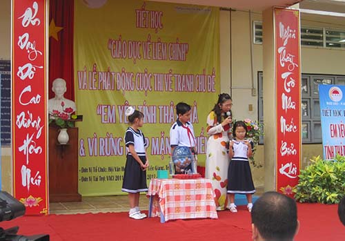 [VNTG] Sáng nay, 29-10-2012, tại Trường Tiểu học Thiên Hộ Dương và Trường Tiểu học Thái Sanh Hạnh (TP. Mỹ Tho), Ban tổ chức cuộc thi vẽ tranh thiếu nhi dành cho học sinh tiểu học tỉnh Tiền Giang năm 2012 đã tổ chức tiết học giáo dục về liêm chính và phát động cuộc thi vẽ tranh với chủ đề "Em yêu tính thật thà" và "Vì rừng ngập mặn ven biển".
