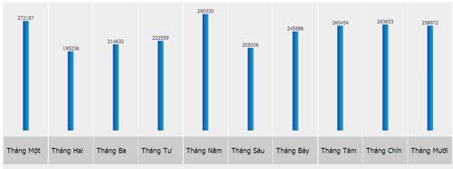 Biểu đồ thống kê lượng truy cập trong 10 tháng của năm 2013. ĐVT: lượt người