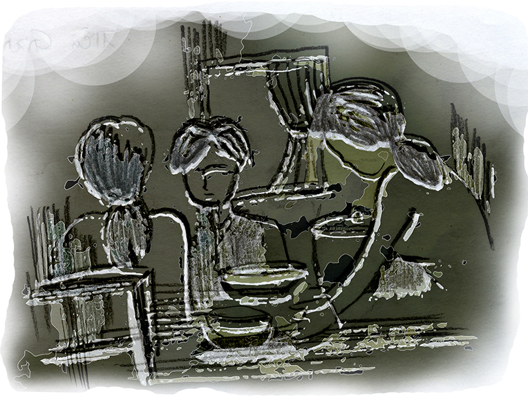 - Em đợi chị dậy rồi em dọn cơm ăn với chị cho vui.