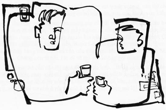 … Đã cụng rồi nhưng anh vẫn cầm ly trên tay chưa uống. Ánh mắt anh đượm buồn, nhìn đâu xa vắng… Anh nhấp chừng nửa ly rồi đặt xuống hỏi tôi: