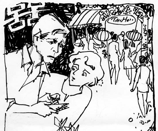 - Trước cưới vài ngày con sẽ cùng em Nho đi chụp ảnh, quay phim ngoại cảnh kỷ niệm, mai mốt sắm đầu máy chiếu coi cho vui. Ảnh chụp chân dung vợ chồng con phải tới “tiêu-đi-ô” dàn dựng kiểu Hàn - quốc, phóng to, ép Lamina dựng trước cửa nhà hàng. Nói chung là con muốn gia đình mình nở mày nở mặt với người ta…