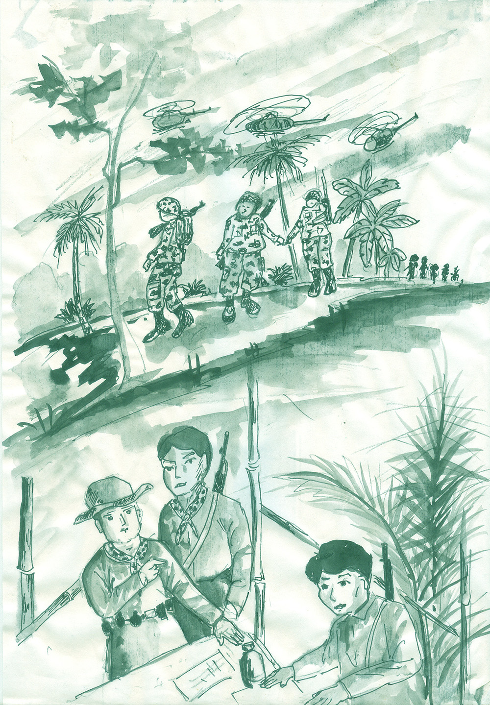 - Tôi đề nghị trên cấp cho ta thêm lựu đạn gài bố trí bên ngoài địa hình. Vướng phải lựu đạn bị thương vong, bọn chúng khựng lại ngay.