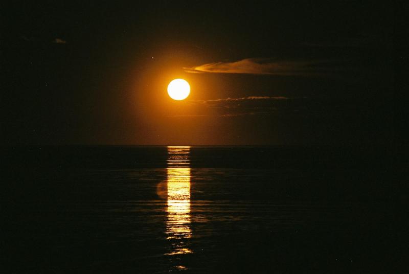 Chỉ có vầng trăng tròn vành vạnh treo giữa trời đăm đắm hướng về anh.