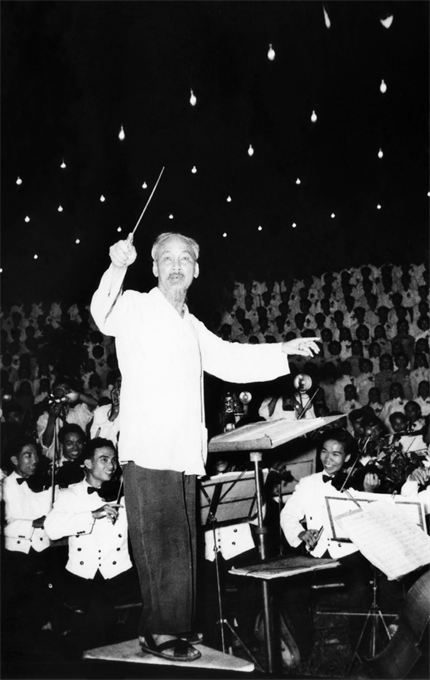 Nhạc sĩ Nguyễn Xuân Hoà ngồi trước mặt tôi, tóc bạc, dáng người nhỏ bé, cặp mắt sáng lên khi kể về khoảnh khắc không bao giờ quên của một thời tuổi trẻ. Ông nhớ lại: “Đêm ấy dàn nhạc giao hưởng đang biểu diễn trong khu Bách Thảo chào mừng Đại hội Đảng toàn quốc lần thứ III thì Bác Hồ đến. Bác đi cùng một đoàn khách quốc tế đến xem hoà nhạc. Khi nhạc trưởng mời Bác lên bục chỉ huy, bác đề nghị dàn nhạc chơi bài Kết Đoàn. Âm nhạc sôi nổi, rộn ràng. Bác rất vui... Khi ấy tôi để ý thấy có một phóng viên ảnh ngồi ở phía sau Bác, cầm máy chờ đợi. Sau này tôi mới biết đấy là phóng viên ảnh Lâm Hồng Long của TTXVN, người trong đêm ấy đã ghi lại một khoảnh khắc đặc biệt trong bức ảnh lịch sử: "Bác Hồ bắt nhịp bài ca Kết đoàn"....