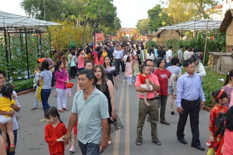 | Nhiều em nhỏ thích thú bên mô hình TP. Mỹ Tho. |