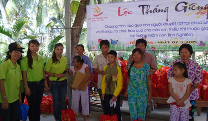 CLB, Tình nguyện viên, Quốc tế, tặng quà, trẻ em, khuyết tật, chùa Linh Phong, Châu Thành, Đài Truyền thanh, Truyền hình