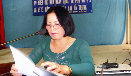 Lúc đầu, khi tổ chức họp ở các chi hội hay họp báo huyện hoặc họp các ngành… chị phải thức suốt đêm để nghiên cứu viết bài phát biểu. Chị luôn học hỏi kinh nghiệm, nghiệp vụ của các chủ tịch hội phụ nữ đi trước cũng như kinh nghiệm của các xã bạn, đặc biệt, là các chi hội trưởng…