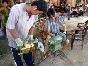 Mười lăm năm qua, ngoài công việc phụ vợ con bán quán nước giải khát ven đường, anh Út còn có thêm nghề chùi lư. Những năm đầu do còn làm theo cách thủ công nên rất vất vả, trước khi chùi phải tìm đủ các thứ mới làm được như khế chua, lá thơm, chanh, trấu... và chùi xong một bộ lư phải mất vài giờ, chính vì thế việc tự chùi lư gia đình của bà con ngày một giảm dần.