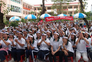 Riêng tại cầu truyền hình trực tiếp thuộc Trường THPT Trương Định có nhiều thầy cô và hơn 200 học sinh đến xem, cổ vũ động viên thí sinh Nguyễn Đại Minh "bình tĩnh, tự tin, cố lên và Trương Định chiến thắng!".