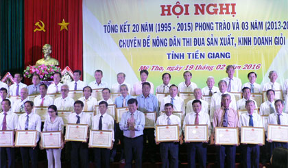 Tổ chức Hội nghị Tổng kết 20 năm phong trào “Nông dân thi đua sản xuất - kinh doanh giỏi”, có trên 450 đại biểu tham dự, trao tặng 52 Bằng khen của Thủ tướng Chính phủ, 48 Bằng khen của UBND tỉnh. Đưa 5 nông dân tiêu biểu dự tuyên dương nông dân xuất sắc và tôn vinh sản phẩm nông nghiệp tiêu biểu toàn quốc 2015.