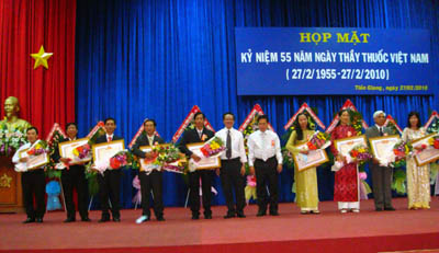 Tại cuộc họp mặt, ngành đã công bố quyết định của Bộ Y tế trao tặng danh hiệu Thầy thuốc ưu tú cho 9 cán bộ Y tế Tiền Giang; Sở Y tế đã khen thưởng 13 tập thể và 52 cá nhân có nhiều thành tích trong thực hiện cuộc vận động "Học tập và làm theo tấm gương đạo đức Hồ Chí Minh".