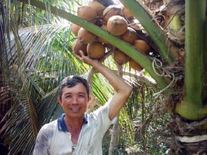 Anh Thông kể về chuyện làm ăn của mình cũng lắm thăng trầm, vất vả, chuyện được mùa rớt giá và ngược lại là điệp khúc của người nông dân, bởi chỉ biết sản xuất làm ra của cải phục vụ nhu cầu đời sống xã hội, còn giá cả thì thương lái mua giá nào bán giá ấy, không bán thì không được, bởi trái cây chỉ neo trên cây chờ giá một thời gian ngắn. Cây trái của anh đến nay tất cả đều cho thu hoạch: 4 công sapô cho thu nhập hằng năm khoảng 15 triệu đồng, vú sữa thu 25 triệu đồng, dừa xiêm thu hoạch từ 700 đến hơn 1 thiên mỗi tháng (1 thiên dừa 1.200 trái), giá bán mức dao động từ 28-40 ngàn đồng/chục (chục 12 trái), thu khoảng 4 triệu đồng/tháng. Còn chanh bông tím trái to, vỏ mỏng, nước nhiều, giá bán thấp nhất 1.800 đồng/kg, có lúc giá từ 13.000 đồng đến 25.000 đồng/kg, thu bình quân 10 triệu đồng/1.000m2. Tổng thu nhập từ các nguồn trên dưới 150 triệu đồng/năm, sau trừ chi phí anh còn dư phân nửa.