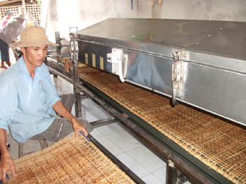 Nói về công việc đang làm, chú Dầm cho biết: "Đã lớn tuổi, vợ chồng tôi mỗi ngày tráng được khoảng 25 - 30 kg, trừ chi phí còn lời khoảng 100.000 đồng. Phần lớn các công đoạn đều làm thủ công (chỉ xay bột bằng máy). Làm ra bao nhiêu thương lái đến lấy hết. Ngoài làm bánh tráng, thời gian còn lại trong ngày, chúng tôi còn có thể làm nhiều việc khác, đồng thời tận dụng phụ phẩm dư thừa để nuôi heo. Nhờ thế, cuộc sống gia đình cũng tạm ổn".