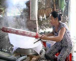 "Nghề này thu lợi nhuận cao vào những tháng giáp Tết Nguyên đán, tuy nhiên rất cực vì phải thức khuya để tráng" - bà Nguyễn Thị Mây ở ấp Hậu Thuận tâm sự.
